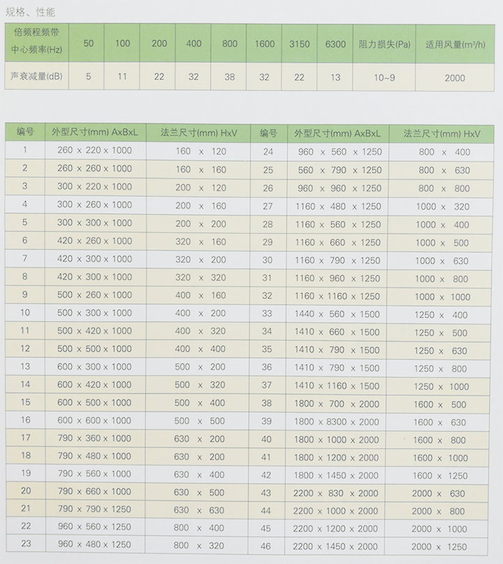 ZP100型消聲器系列是在國家通用圖集T701-6消聲器的基礎(chǔ)上,吸收了國內(nèi)外最新技術(shù),設(shè)計(jì)的新產(chǎn)品,是國家建筑標(biāo)準(zhǔn)設(shè)計(jì)圖集通用產(chǎn)品。標(biāo)準(zhǔn)號(hào)為97T710。 ZP100型消聲器系列主要應(yīng)用于各類通風(fēng)空調(diào)系統(tǒng)中的噪聲治理,可有效地降低空氣動(dòng)力性噪聲,具有適用風(fēng)量范圍大、系列規(guī)格全、與標(biāo)準(zhǔn) 風(fēng)管配套好、消聲量高、氣流阻力小、防火、防潮、防霉、防蛀等特點(diǎn),特別適用于種類大型公共建筑,例如:廣播電視大樓、影劇院、賓館、寫字樓等高層建筑的通風(fēng)空調(diào)系統(tǒng)消聲,也可適用于工業(yè)企業(yè)的通風(fēng)系統(tǒng)消聲。 ZP100型消聲器為矩形片式結(jié)構(gòu),采用鍍鋅鋼板制作,咬口拼接。共有49個(gè)規(guī)格,處理風(fēng)量范圍為720m /h-90000m /n(也可特殊定制),消聲量為15dB(A)/m,壓力損失14-55Pa(風(fēng)速5-10010m/s)。ZP100型消聲器片厚100mm,單節(jié)有效長度為1000mm,根據(jù)消聲量需要及現(xiàn)場安裝位置的不同,可幾節(jié)消聲器串聯(lián)組合使用。經(jīng)同濟(jì)大學(xué)聲學(xué)所測定,消聲量為15db以上,壓力損失為14-55Pa。 外形示意圖 ZP100-型消聲器規(guī)格選用表